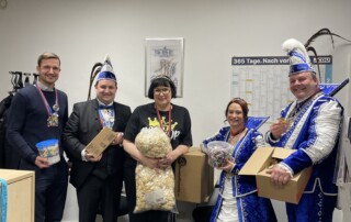 In dieser Woche konnte Anette Moesta, MdL zusammen mit dem B-Kandidaten für die Landtagswahl Maximilian Rumpf das Andernacher Prinzenpaar samt Hofstaat sowie Vertreter des Festausschusses zu einer kleinen Verschnaufpause im Bürgerbüro in Andernach begrüßen. Prinzessin Daniela I. die kleine Klaus aus dem Ümbedhaus und Prinz Carsten I. von Feuer und Flamme wurde zur Unterstützung Wurfmaterial für den Rosenmontagszug überreicht. Das Prinzenpaar bedankte sich mit einem dreifachen „Andernach ALAAF“ sowie einem dreifachen „Ratsch Bum“ – ganz nach Tradition der Blauen Funken. Als besondere Anerkennung wurden Anette Moesta und Max Rumpf mit dem diesjährigen Orden des Andernacher Festausschusses ausgezeichnet. „Diese Auszeichnung ist