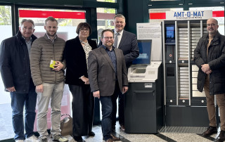 Die CDU-Landtagsfraktion besuchte kürzlich die Verbandsgemeindeverwaltung Mendig im Wahlkreis von Anette Moesta MdL, um sich über den fortschrittlichen "Amt-O-Maten" zu informieren, ein neuartiges Selbstbedienungsterminal, das im Rahmen des Bundesprojektes „Smart Cities“ erprobt wird. Dieser Besuch, an dem auch der Erste Kreisbeigeordnete Pascal Badziong teilnahm, verdeutlichte das Engagement der Region für digitale Transformation und bürgerfreundliche Verwaltungsdienstleistungen. Während der Präsentation durch Bürgermeister Jörg Lempertz, demonstrierte der Fraktionsvorsitzende Gordon Schnieder die Funktionen des Amt-O-Maten, indem er exemplarisch einen „neuen“ Personalausweis abholte. Der Amt-O-Mat ermöglicht es Bürgerinnen und Bürgern, Verwaltungsdienstleistungen wie das Scannen von Dokumenten, Identifizierung mittels eID, sowie den Ausdruck, die Bezahlung von
